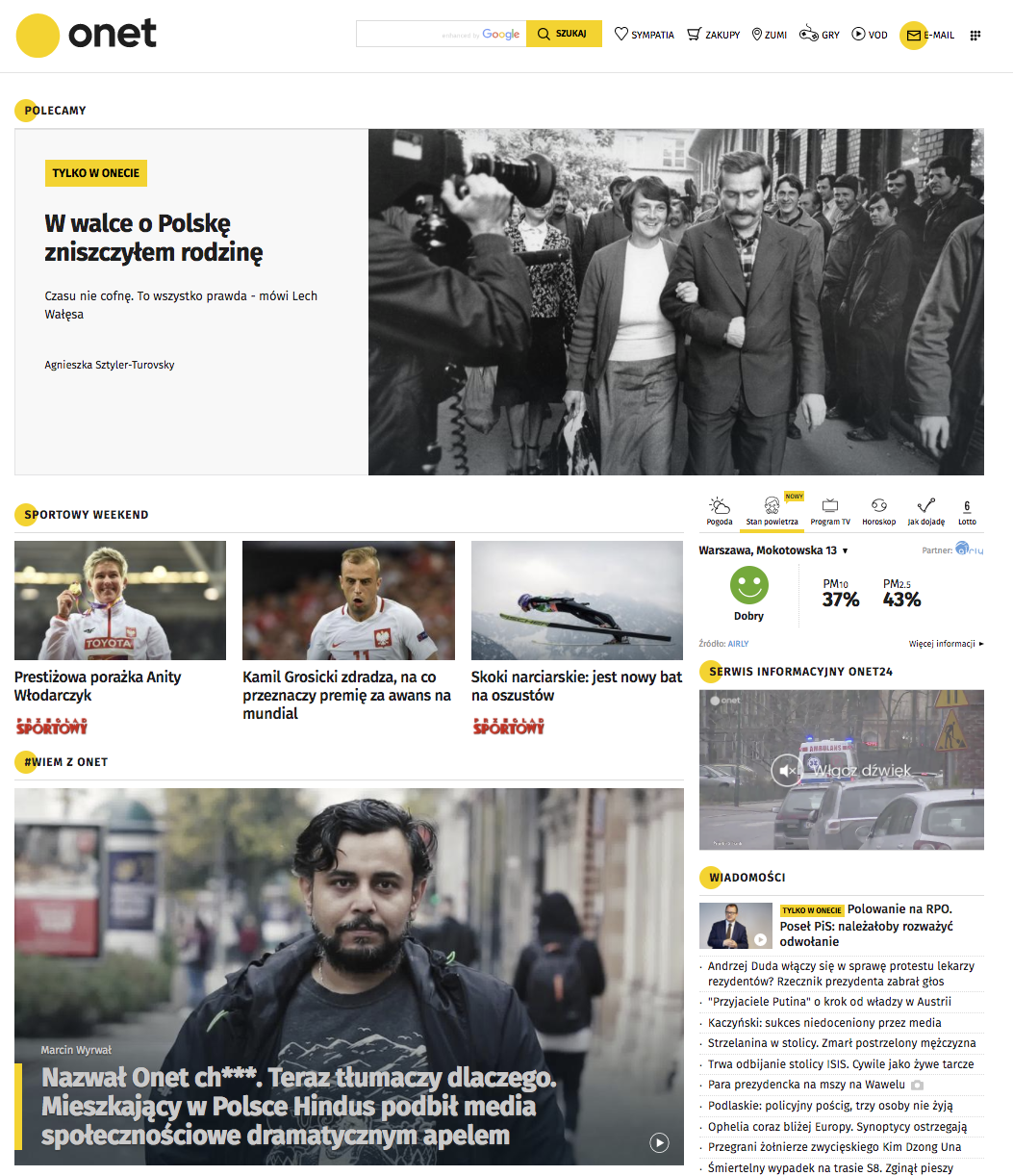Viren Bhandari na głównej Onetu, Szacun za zaproszenie bo „skrytykował Onet i TVN24 i nazwał ich chujami” – ale chyba trochę Viren wyszedłeś na oszołoma i powstał materiał w stylu, który na Blog Forum Gdańsk krytykowałeś – krótki, raczej podkręcający emocje niż informujący o tym co się stało. Sam, nie znając kontekstu całej sytuacji i samego Virena miałbym negatywne odczucia.