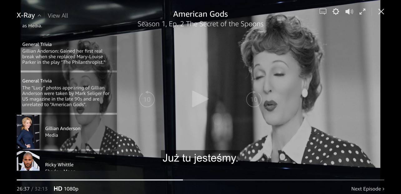 Funkcja X-RAY podczas odtwarzania filmów na Amazon Prime Video robi robotę. Wyświetla biogramy aktorów występujących w konkretnej scenie, nazwę utworu, który leci w tle czy też info o samej scenie. Mega!