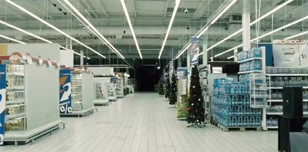 Ja sądzę, że film, jeśli ma promować markę /supermarket/ nie może się opierać na haśle reklamowym /zawartym w jednym zdaniu/. Promocja takiego miejsca powinna zawierać się w przesłaniu całego filmu, ale takim które nie jest uniwersalne, tylko takim które dotyczy tego akurat obrazu. I tak, oglądając zwiastun można wywnioskować, że ratunek może pojawić się w osobie Właściciela sklepu. Czyli Sklep i właściciel są tak naprawdę dobrzy, dążą do dobra klienta a wewnętrzny twór, jakim jest firma ochroniarska, oraz szef / nie właściciel/ przejeli kontrolę nad całością i terroryzują klientów. Biedny dobry dziadzio właściciel kocha swoich klientów a tu nagle antagonista robi taki syf. Wręcz na końcu zaczyna nawet szantażować właściciela. Taki sobie terror Św. Mikołaja.