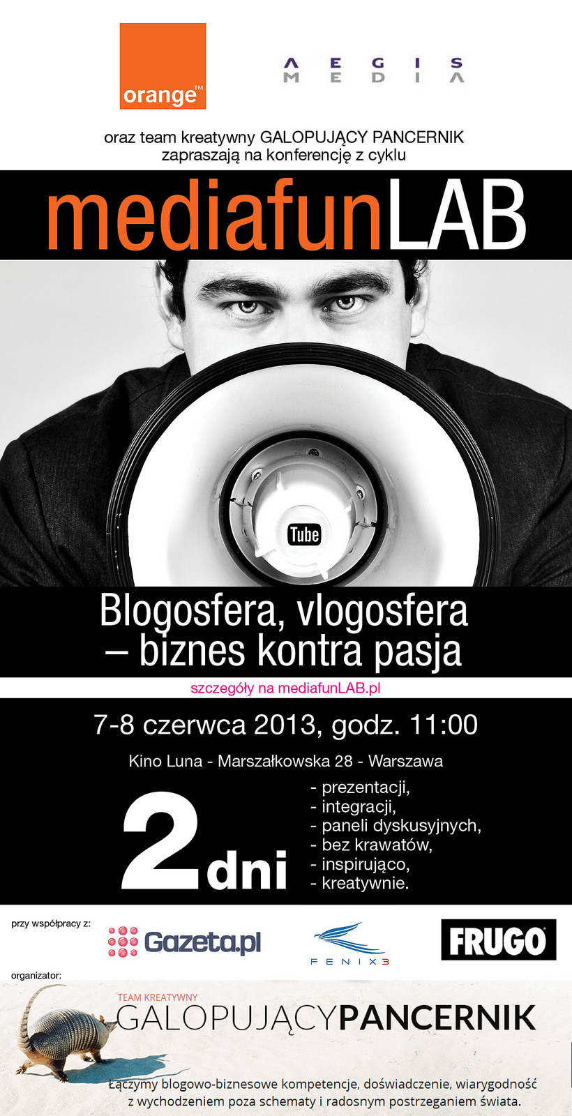 Podczas czerwcowej konferencji mediafunLAB skupimy się na trzech obszarach: blogosferze, vlogosferze i przedsiębiorczości. Istotnym elementem, który łączy te trzy różne światy jest pasja. Nie będziemy się zastanawiać czy blogosfera i vlogosfera istnieje, jak funkcjonuje i czy jest mniej lub bardziej wpływowa – to zostawiamy tym, którzy dopiero obudzili się w erze mediów społecznościowych.