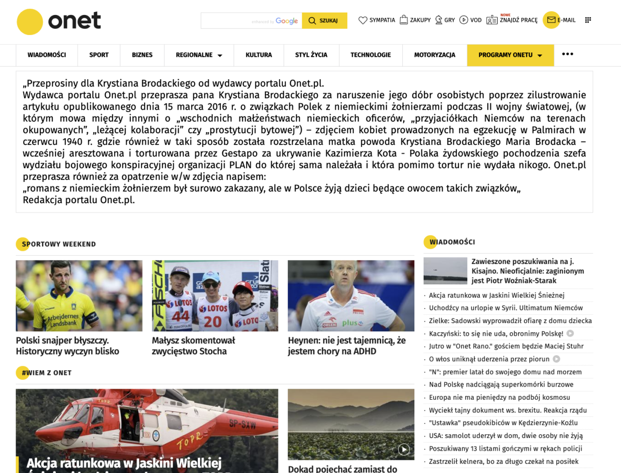 Treści wyroku dokładnie nie znam (podobno rok więzienia w zawieszeniu na 3 lata) i umieszczenie przeprosin na YT i instagramie, ale jestem ciekaw czy sposób publikacji został dokładnie opisany (stories). W wyrokach dotyczących przeprosin w mediach, określa się np. dokładnie wielkość czcionki i sposób umieszczenia przeprosin – teraz na Onecie wiszą wielkie przeprosiny dla Krystiana Brodackiego.